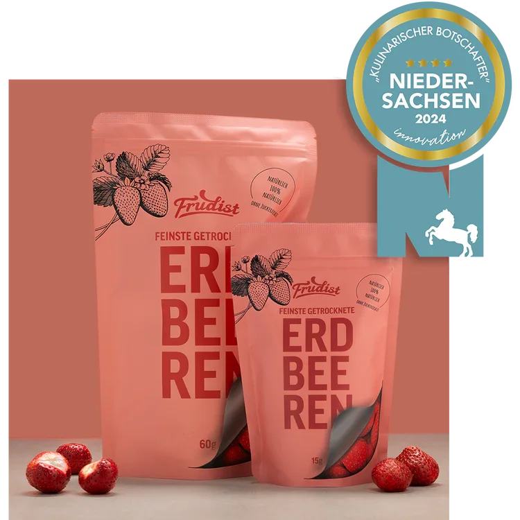 Frudist’s freeze-dried strawberries were recognised as a Culinary Ambassador of Lower Saxony 2024. The jury described them as a “true taste experience”, highlighting their exceptional appearance compared to conventional freeze-dried fruits. Particular praise was given to the company’s proprietary processing method, which was recognised as an outstanding innovation.