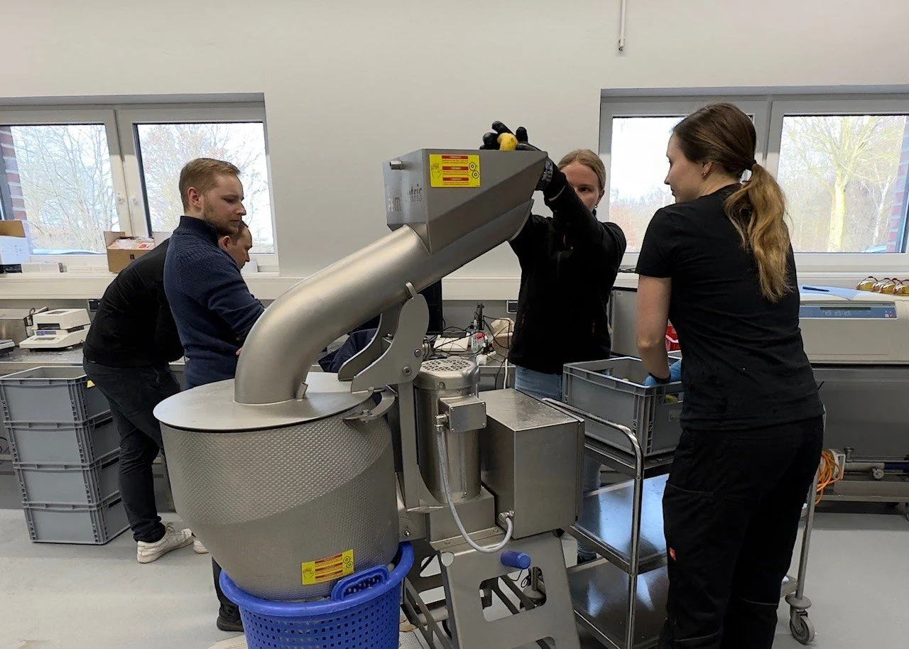 During the trials, potatoes were washed, peeled, and then PEF-treated. Afterwards, the treated potatoes were sliced using a slicer equipped with a microphone and a vibration sensor. The recorded data will then be analysed using AI to evaluate the treatment results.